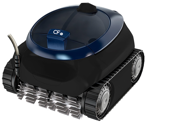 CF2000 PRO inkl. Trafo, 18m Schwimmbadkabel, vordere und hintere PVC-Spiralbürsten, mit Transport-Caddy. Reinigt Boden, Wände und Wasserlinie. Maximale Poolgrösse 12 x 6m. Steuerbar via Smartphone über dessen App.